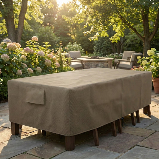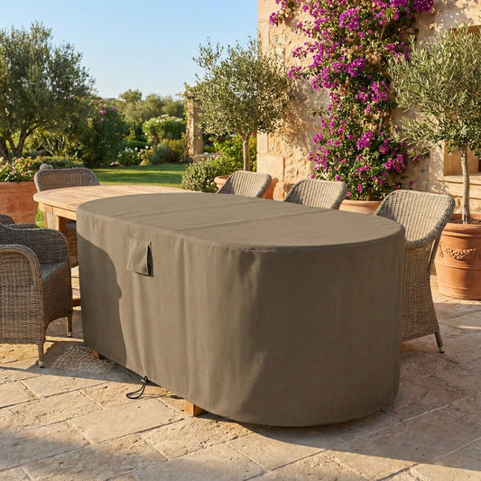 - Tables de jardin (Rectangulaires, Rondes & Ovales) : Quelle que soit la forme, nous créons la housse parfaite. Pour les tables rondes et ovales, nous garantissons un ajustement net qui épouse les courbes.