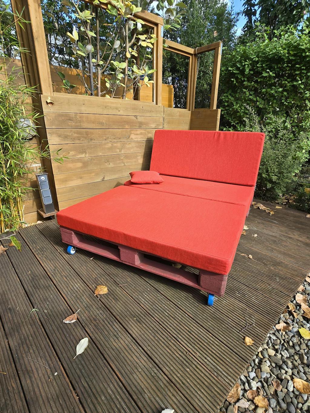 Ce confort est combiné avec notre housse en Oléfine éprouvée. Ce matériau est la référence pour les textiles d'extérieur : il est grand teint, résistant aux moisissures et respirant. Que ce soit en plein soleil ou lors de nuits humides, votre set de palettes reste durablement beau. Configurez maintenant vos dimensions et apportez le facteur détente ultime sur votre terrasse. ZOTRA – S'allonger décontracté, mieux s'asseoir.